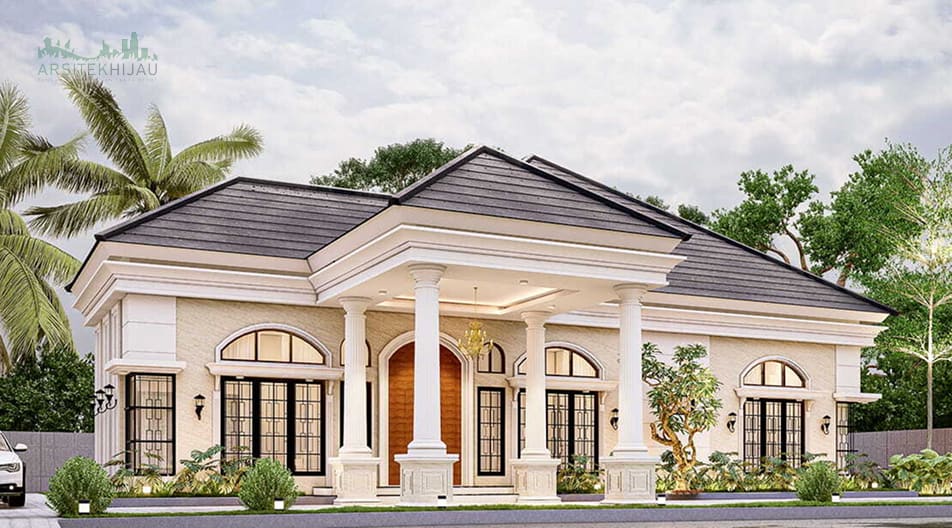 Desain klasik menghadirkan kesan megah, mewah, dan elegan. Pilar besar, detail ukiran, serta ornamen dekoratif menjadi ciri khas utamanya. Rumah klasik biasanya memerlukan lahan yang luas karena ukurannya besar dan detail arsitekturnya cukup rumit. Hunian bergaya klasik sering dianggap sebagai simbol kemewahan dan status sosial.