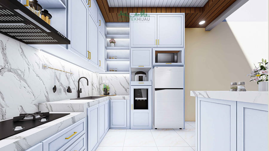 Dapur Modern dengan Nuansa Hangat dan Rapi