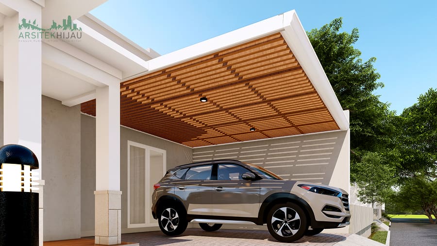Desain Carport Minimalis dan Modern dengan Kanopi Kayu