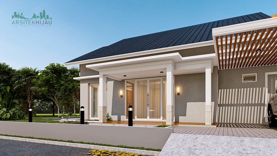 Are carport pada desain rumah milik Bpk ED dirancang dengan finishing kayu pada bagian plafon yang terlihat estetik dan kokoh. Desain sentuhan menggunakan kayu, menyelaraskan dengan konsep tropis sehingga memberikan kesan natural.